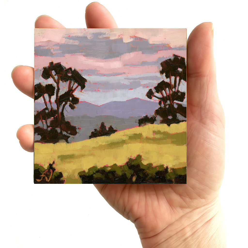 Unless otherwise stated, all of my paintings have been created with artists-quality oil paints on pre-primed/gessoed panel. They are finished with artists' quality retouch varnish.