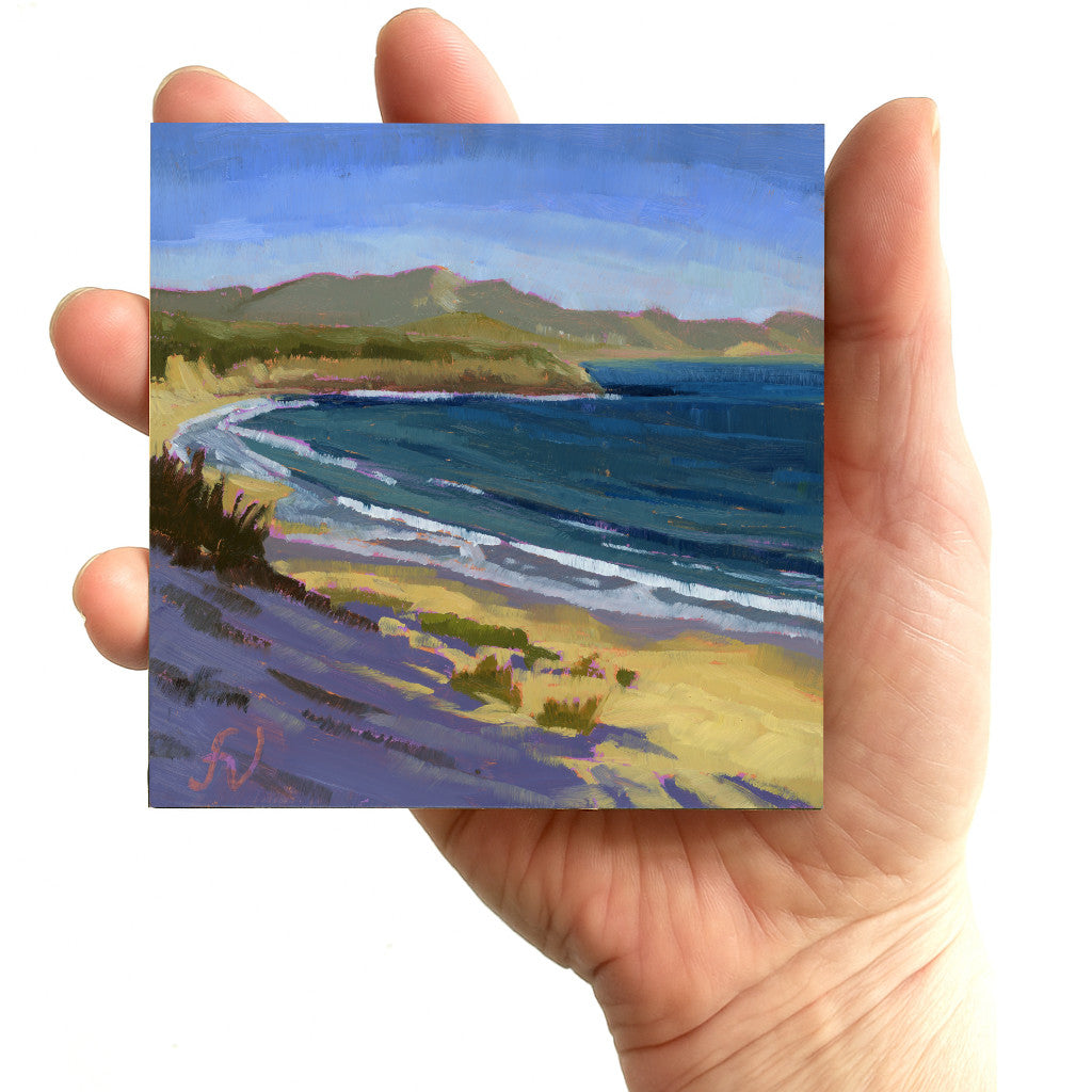 A long walk for a wide beach with high dunes. Tasman Peninsula, Tasmania.